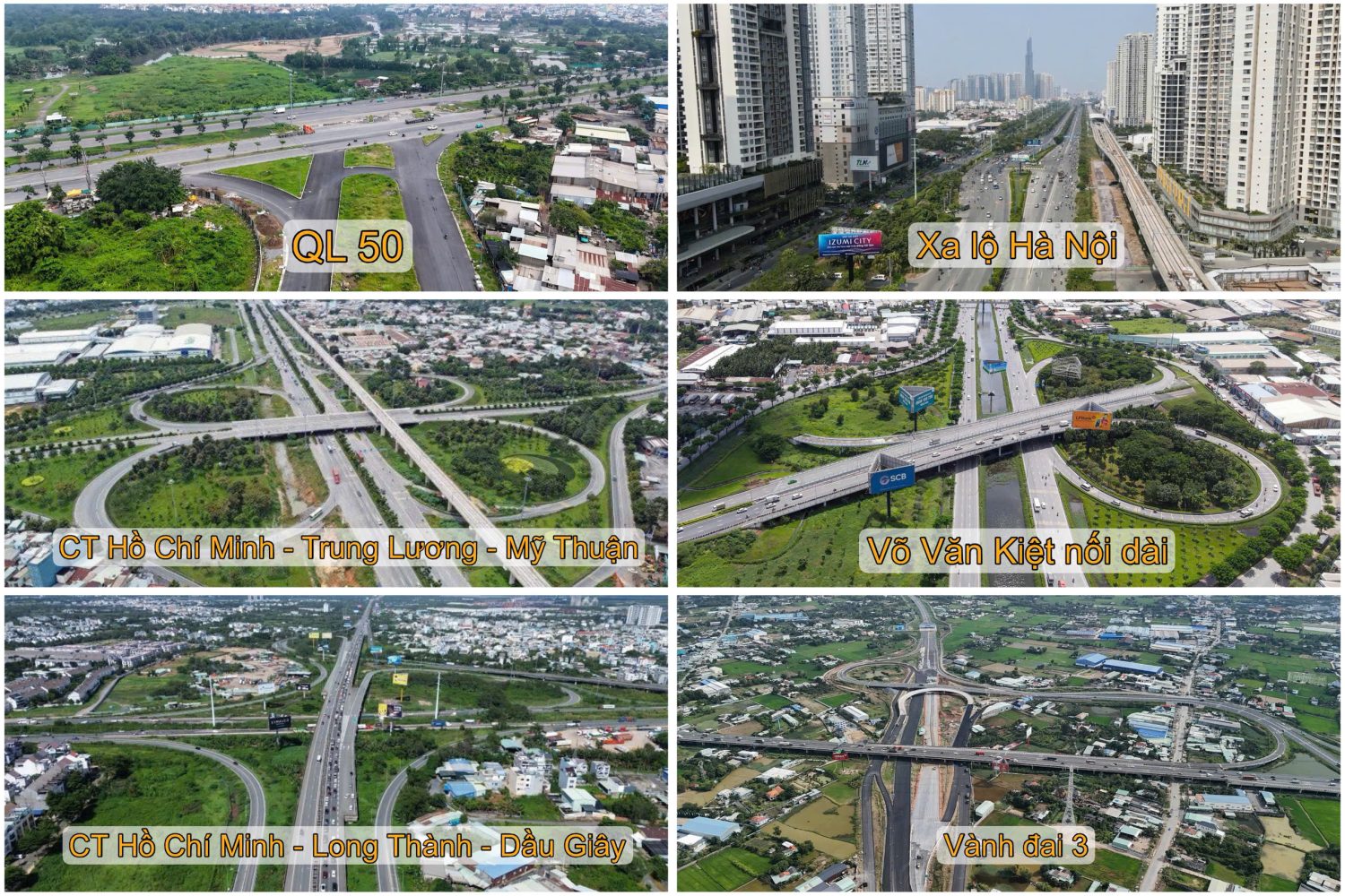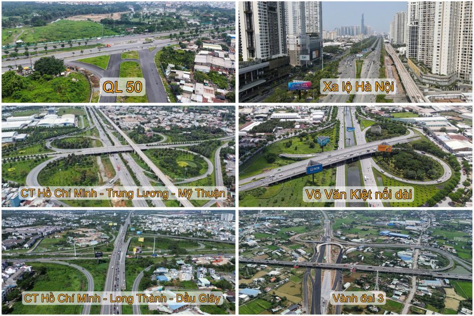 - Khu Tây: Long An và quận Bình Tân thu hút nhờ mức giá “mềm” và kết nối giao thông linh hoạt qua đại lộ Võ Văn Kiệt, Quốc lộ 1A và các tuyến cao tốc huyết mạch. Sự chênh lệch giá giữa trung tâm và vùng ven chính là động lực khiến dòng tiền đổ bộ về đây.